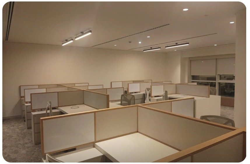 Our scope included electrical wiring and lighting, HVAC and ventilation systems, plumbing installations, and fire life safety systems—all executed in compliance with consultant regulations and international building codes. The work was completed with close coordination with the interior design team to ensure that all MEP services were seamlessly integrated with the modern, functional workspace layout.