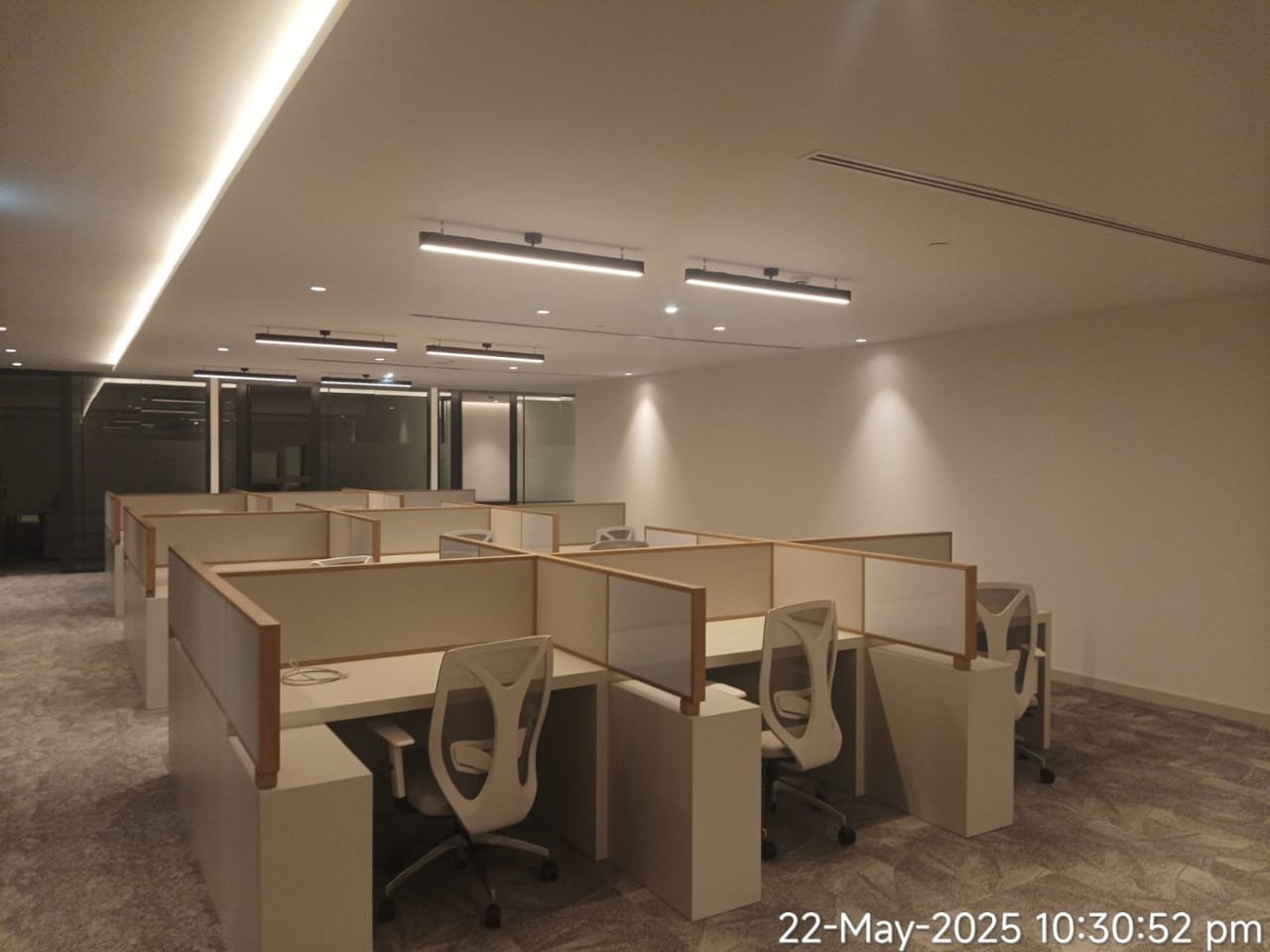 Our scope included electrical wiring and lighting, HVAC and ventilation systems, plumbing installations, and fire life safety systems—all executed in compliance with consultant regulations and international building codes. The work was completed with close coordination with the interior design team to ensure that all MEP services were seamlessly integrated with the modern, functional workspace layout.